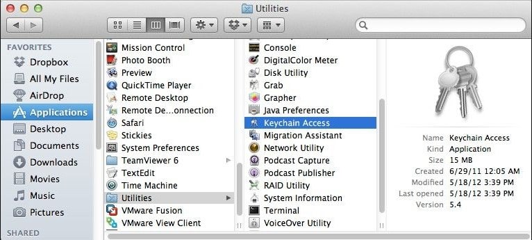 Step 1: Open "Applications" > "Utilities" > "Keychain Access" and click Keychain Access to open it.